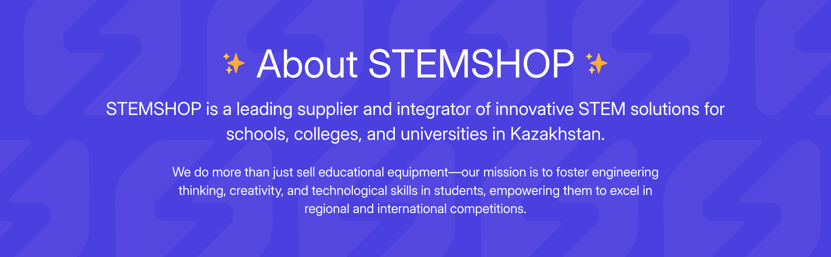 STEMSHOP is a leading supplier and integrator of innovative STEM solutions for schools, colleges, and universities in Kazakhstan. We do more than just sell educational equipment—our mission is to foster engineering thinking, creativity, and technological skills in students, empowering them to excel in regional and international competitions.