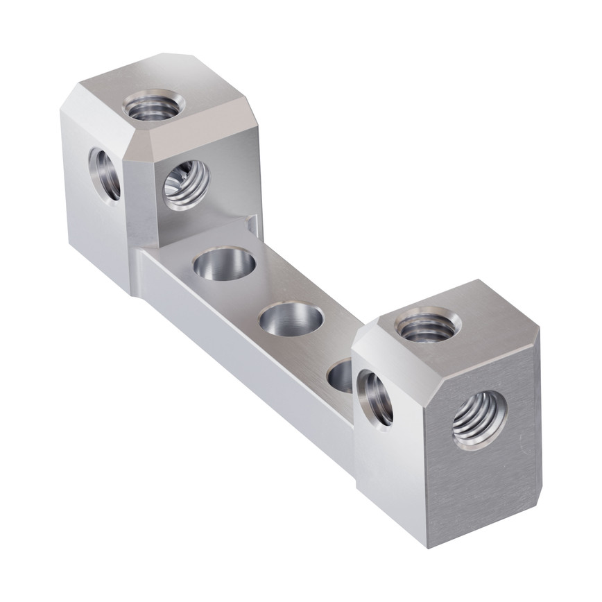 1205 Series Dual Block Mount (1-5) - 2 Pack представляет собой комплект из 2 алюминиевых двойных блоков, предназначенных для универсального соединения компонентов по системе goBILDA®.
