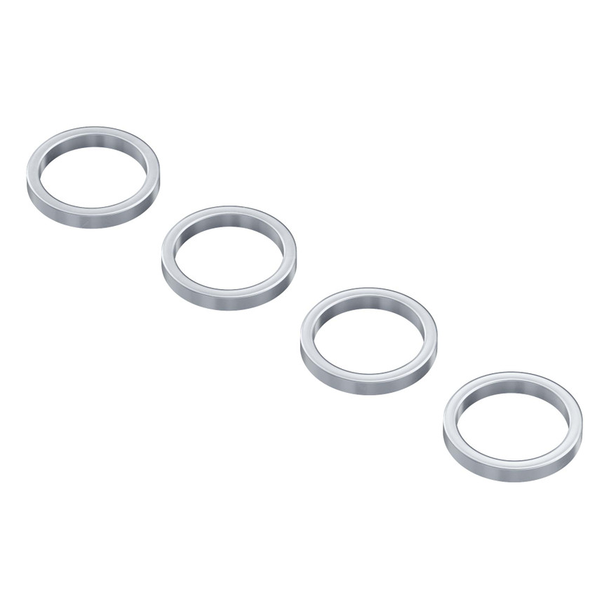 12mm ID Steel Spacer (15mm OD, 2mm Length) - 4 Pack представляют собой стальные дистанционные втулки длиной 2 мм, используемые для установки между компонентами сборки.