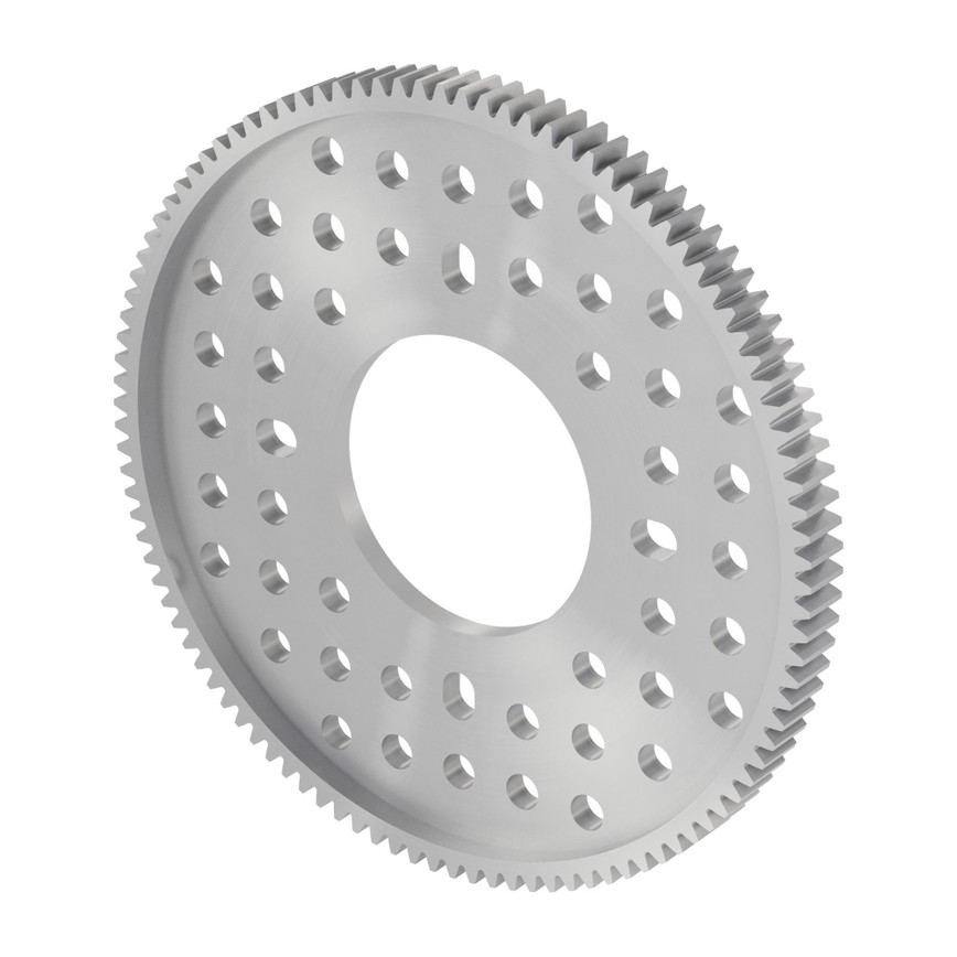 2302 Series Aluminum, MOD 0.8, Hub Mount Gear (32mm Bore, 105 Tooth) представляет собой прочную алюминиевую шестерню с 105 зубьями и шагом MOD 0.8. Совместима с любыми шестернями MOD 0.8, но чаще всего используется вместе с 15-зубой серво- или пиньон-шестернёй. При комбинации с серво-шестернёй создаётся передаточное отношение 7:1, которое снижает скорость вращения и увеличивает крутящий момент в семь раз.