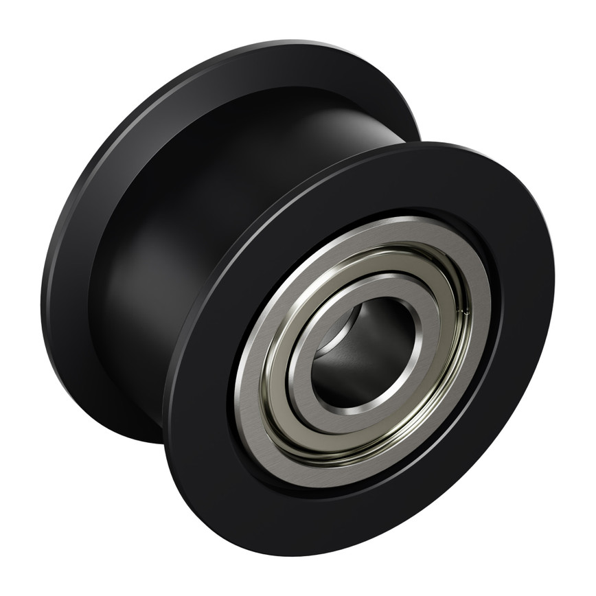Поликарбонатный шкив обеспечивает ультра-гладкую поверхность для работы как с гладкой, так и с зубчатой стороной ремня. Фланцы на расстоянии 9,5 мм действуют как защитные направляющие для ремня.